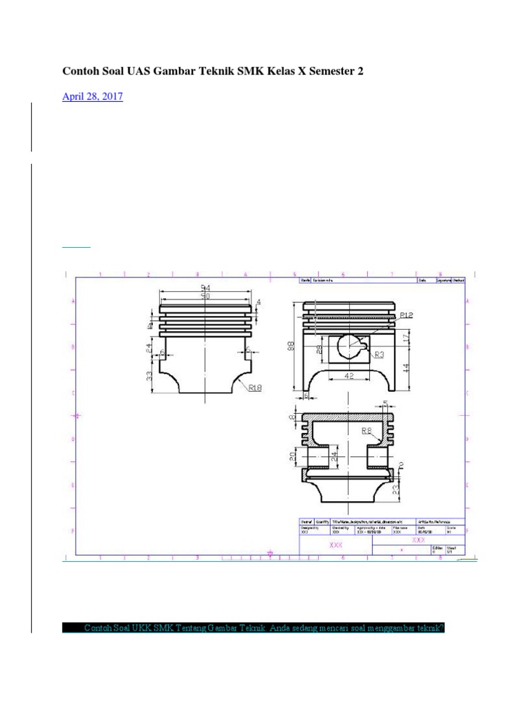 Soal uh pts pas gambar teknik mesin 18 soal uh pts pas pekerjaan dasar teknik mesin 19 soal uh pts pas teknik pemesinan frais kelas xi 14 soal ulangan dasar perancangan teknik mesin 7 soal unbk teknik pemesinan 13. Soal uh pts pas pekerjaan dasar teknik mesin 19. Sebuah roda gigi payung mempunyai sudut kronis 66 0 sudut kepala gigi 4 0 5 dan sudut kaki gigi 3 0 20 dikerjakan dengan mesin frais. Feeler gauge untuk mengukur… a. Kompetensi tesebut diantaranya mencakup soal fasterner threaded sealant adhesive, alat ukur mekanik, alat uku elektrik, handtools, special sevice tools (sst), jacking blocking lifting, alat ukur pneumatik, dan bearing seals. Soal pekerjaan dasar teknik otomotif berikan tanda (x) pada salah satu pilihan jawaban yang paling benar. Lampiran 2 analisis hasil evaluasi belajar mata pelajaran : 20200613 we have 11 images about soal pilihan ganda gambar teknik mesin including images pictures. Rachman 5 7 juli 2018 05.41 Berisi latihan dan pembahasan soal pilihan ganda dan essay mata pelajaran dasar perancangan teknik mesin dengan materi jenis bahan logam fero dan non ferro. 2 日前 soal dan kunci jawaban ulangan harian gambar teknik mesin gambar potongan dan pemberian ukuran teknik pemesinan. 20210202 soal pekerjaan dasar teknik otomotif merupakan salah satu pelajaran pada jurusan teknik kendaran ringan pada kelas x. Contoh soal dan jawaban pekerjaan dasar teknik mesin.